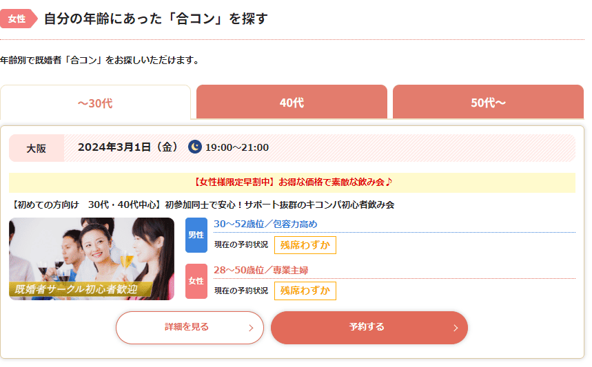 登録している人のほとんどが既婚者であり、普段出会えない人との出会いが見つかることから、利用者も徐々に増えつつあります。