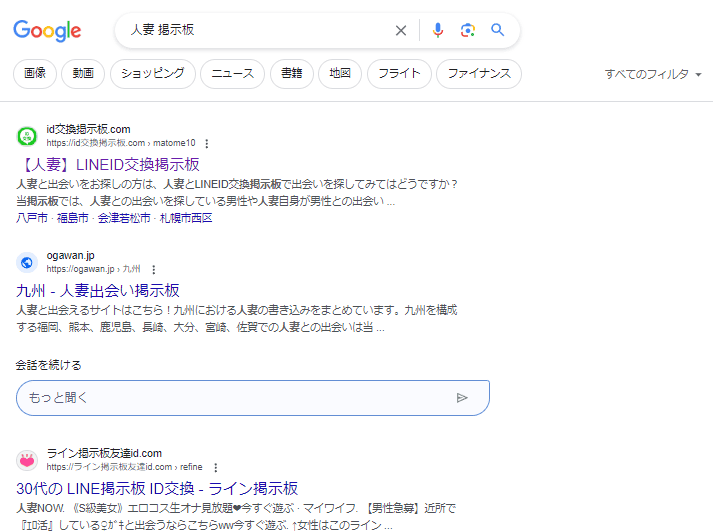 こちらは、「人妻 掲示板」で調べた際の検索結果です。